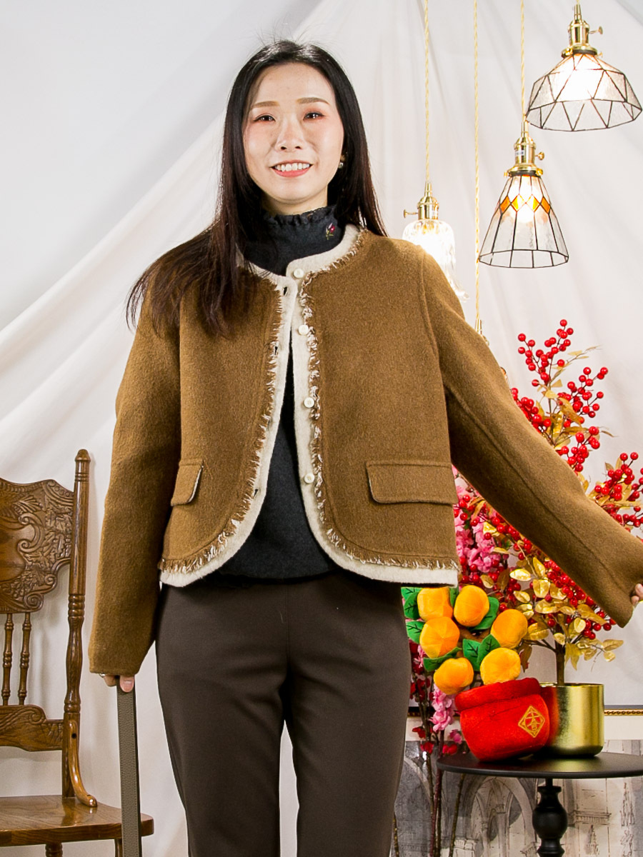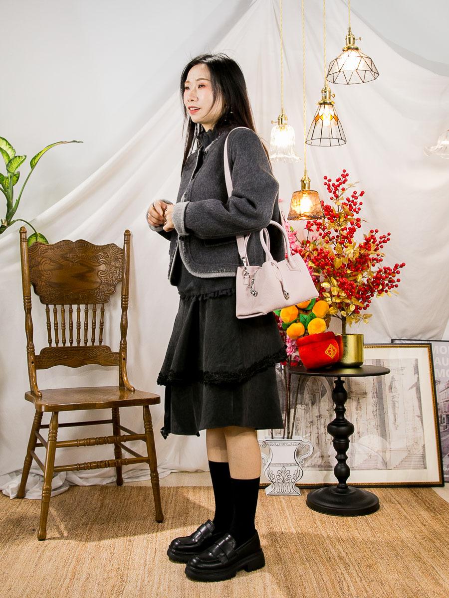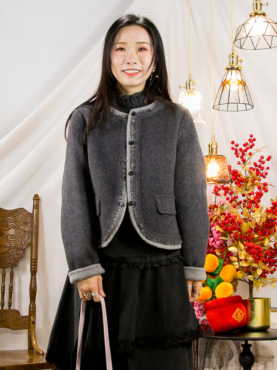 布料 : 羊毛料(70%) , 軟身 , 沒有彈性 , 不咭 ,不透