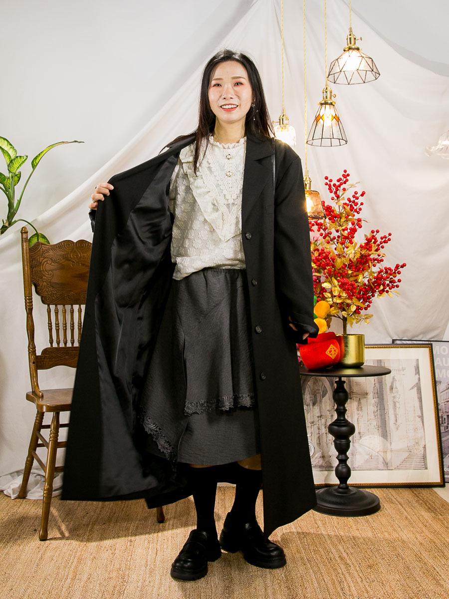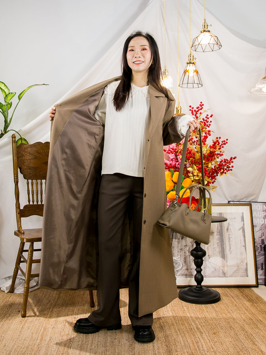 布料 : 滑滑西裝料 , 軟身 , 沒有彈性 , 不咭 ,不透