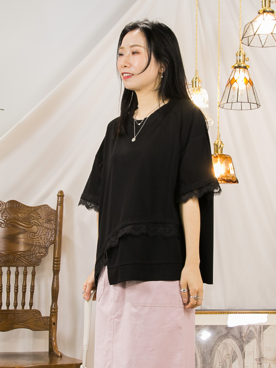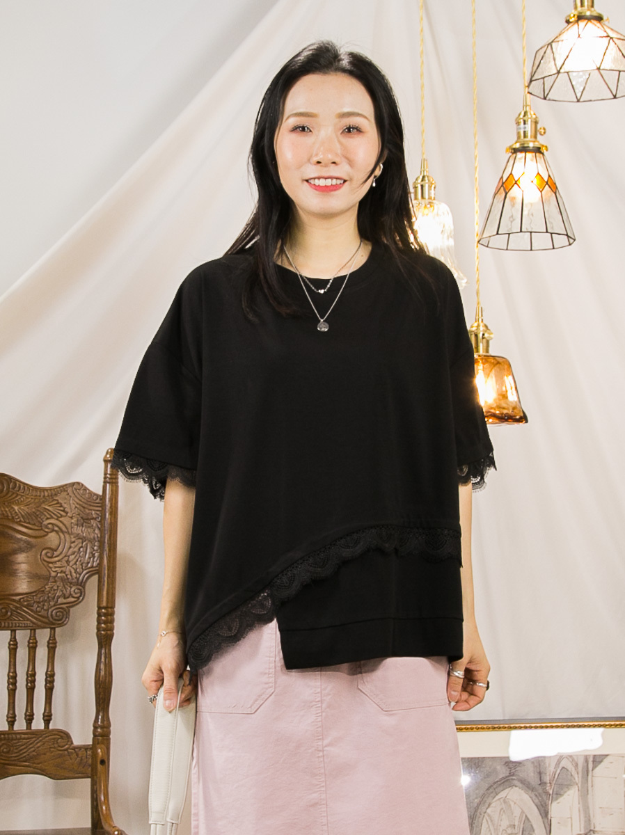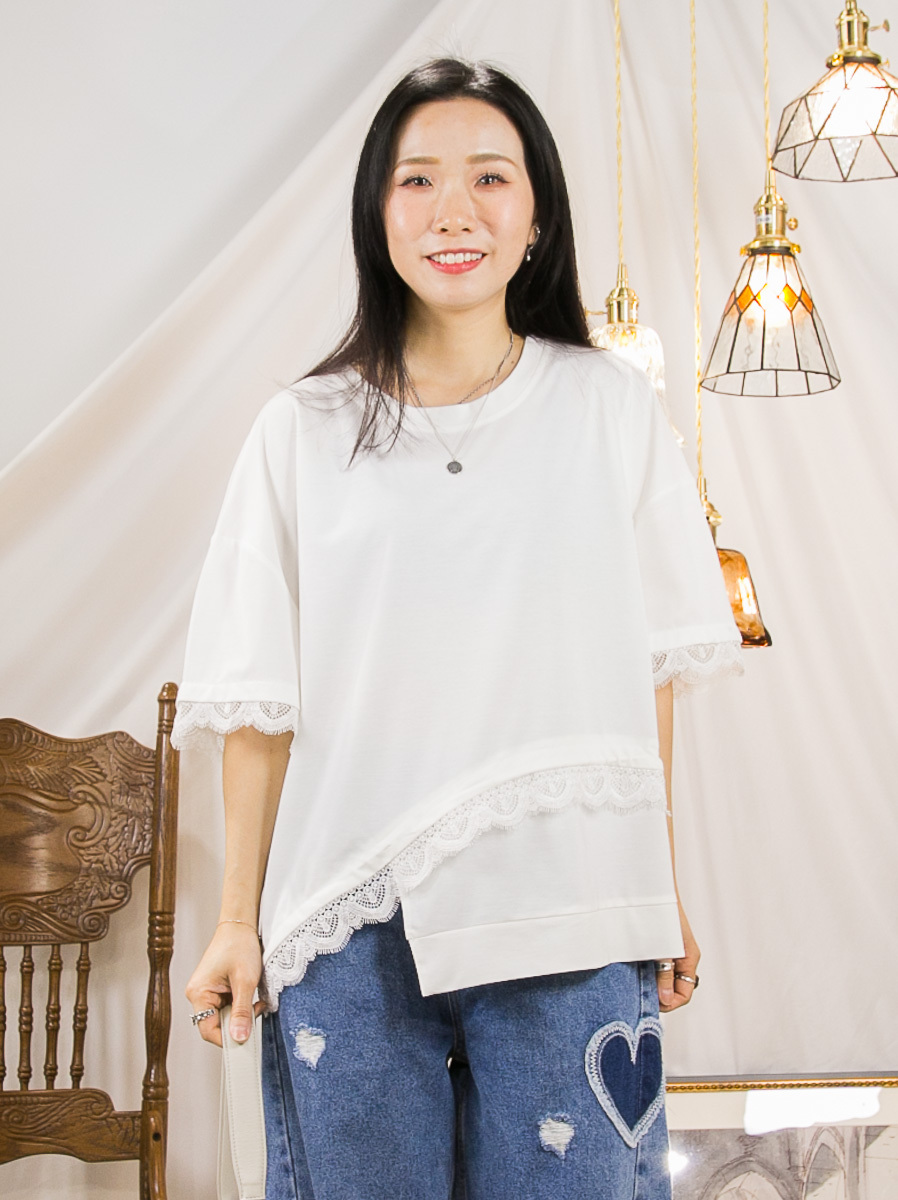 袖口 下擺LACE.不規則下擺.COTTON料TOP