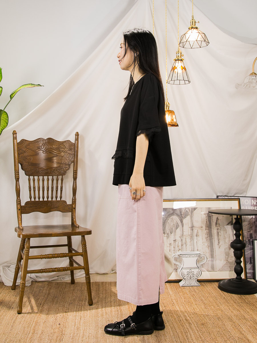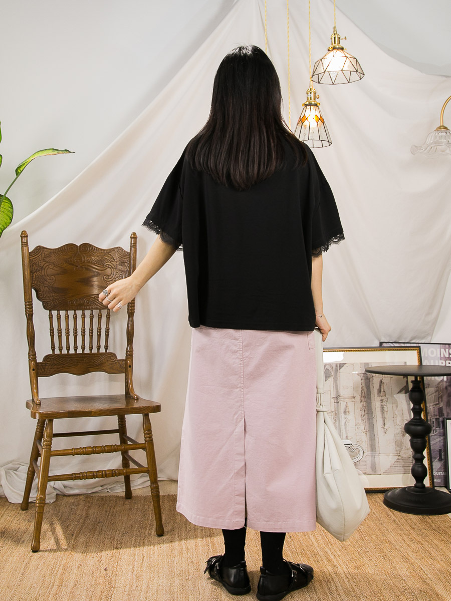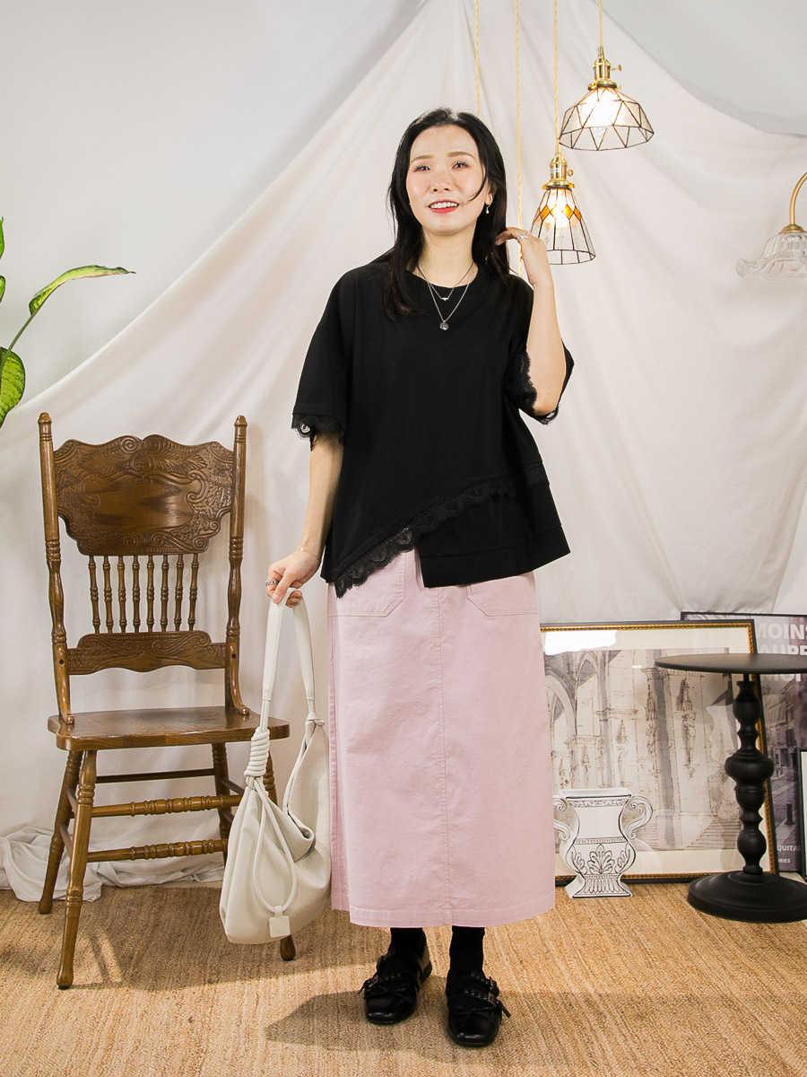 袖口 下擺LACE.不規則下擺.COTTON料TOP