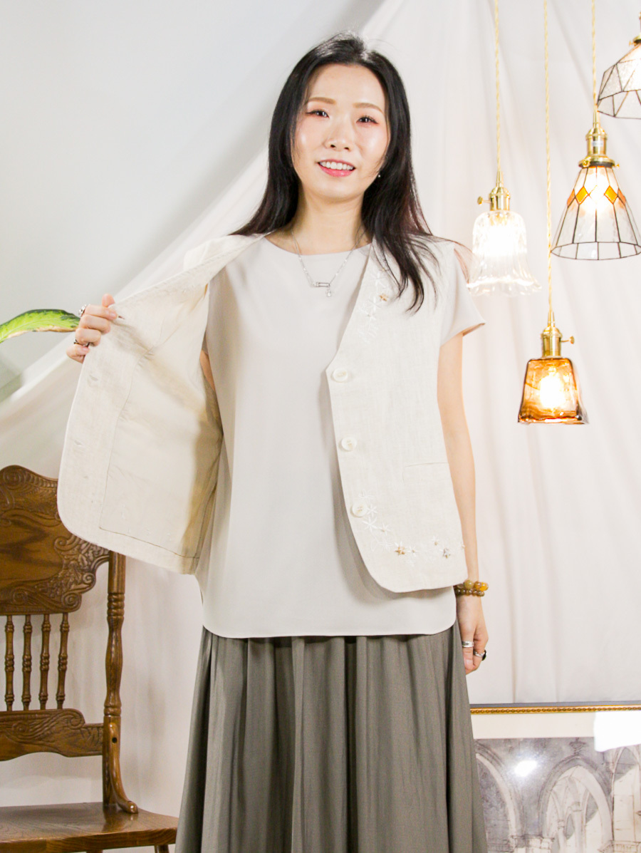 布料 : 麻棉料 , 軟身 , 沒有彈性 , 不咭 , 不透
